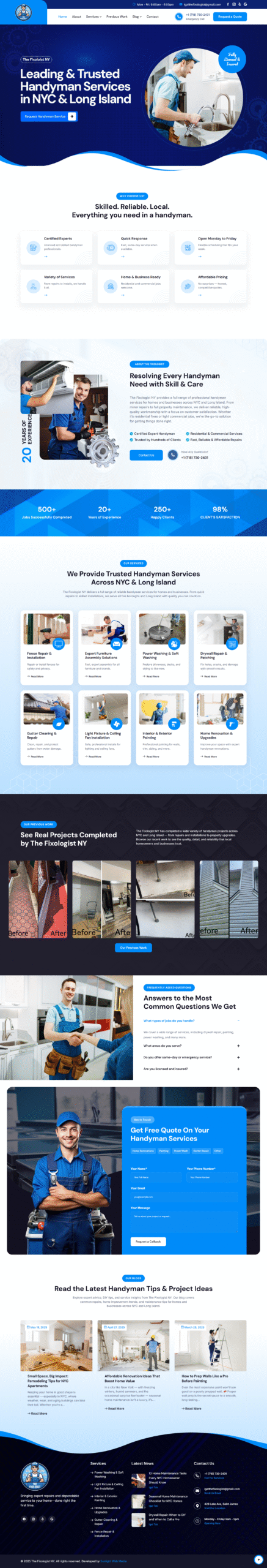 We built a clean, functional website for The Fixologist NY — a professional handyman serving all five boroughs and Long Island. The site helps generate leads and streamline service inquiries, with fast mobile performance and simple navigation. Local SEO was a major focus to help attract nearby clients, and service pages were structured to highlight key offerings and booking info clearly.